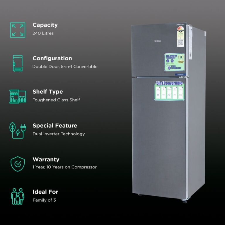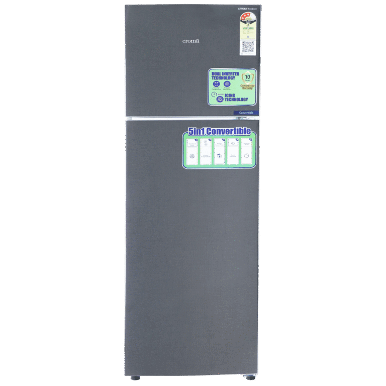 Croma 240 Litres 3 Star Frost Free Double Door Convertible Refrigerator with Dual Inverter Technology ( Criss Cross Metallic Grey)